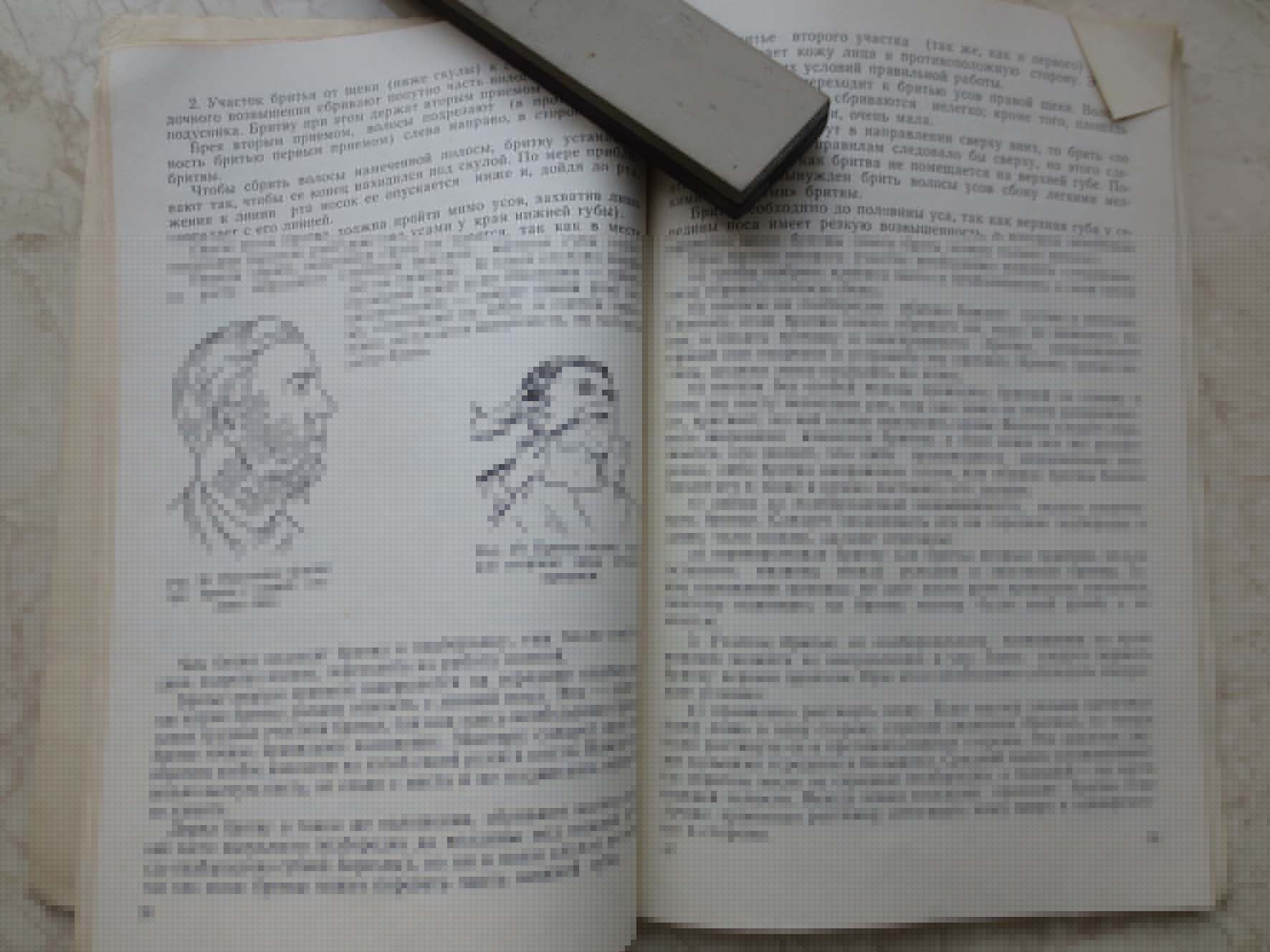 случайно зацепил такой экземпляр в практически отличном состоянии. К.Г.Лазарев "Парикмахерское дело" 1964г. 126 стр тираж 10000 шт. Сохранилась даже таблица опечаток... Довольно много материала про бритвы и само бритьё. Кстати, раньше не встречал и не обращал внимания на такой интересный бритвенный термин - заправ (фото 2), надо взять на вооружение...))) Бесит, когда приходится пользоваться бритвой моложе себя...