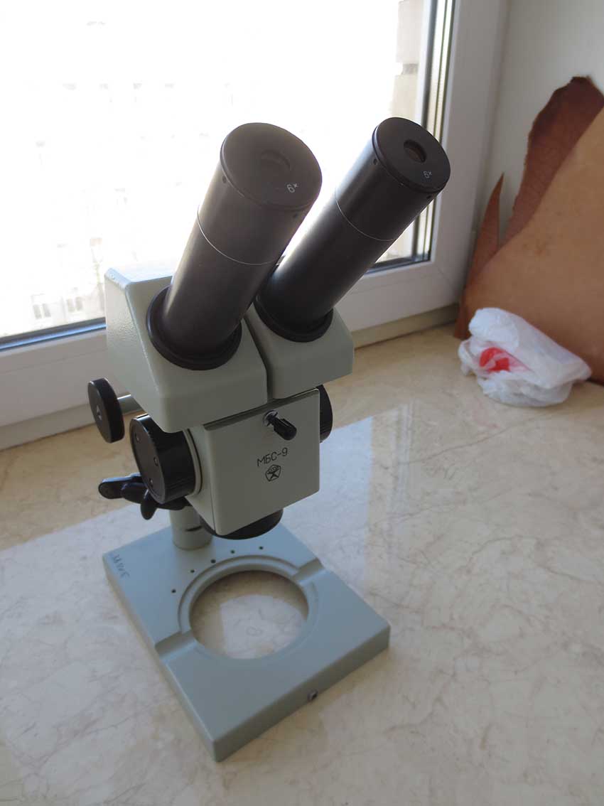 Ну и последняя похвастушка на сегодня (тройку бритв тоже купил, но про них не буду)... Купил на блошином рынке в Салтыковке. Вот такой микроскоп МБС-9, корпус был весь в каком-то налёте, но оттёр и стал, как новый. Проверил оптику, ничего не двоит, всё чисто. Пока решил оставить себе, поставил вместо МБС-1, посмотрю, как в работе.... Обошёлся он мне в 3500 рублей, рискнув купил - слишком низкая цена, мог быть сбит фокус или что ещё. Пронесло! Это сообщение к тому, что если почаще кататься по рынкам, блошкам в своём городе, то можно прикупить качественную оптику для контроля заточки за небольшие деньги. Всем удачи!))) Бесит, когда приходится пользоваться бритвой моложе себя...