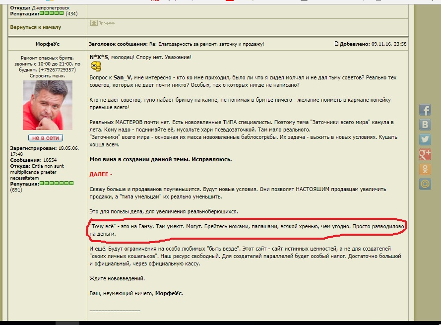 - Ремонт опасных бритв, звонить с 11-00 до 23-00, +79267729357, спросить Олега.