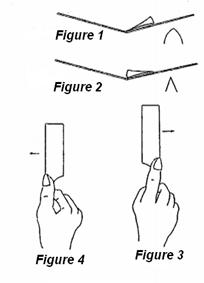 Такое может теоретически происходить, если гладишь бритву по бумажной полоске.. Или по ремню, толщина которого 0,5мм.)) На нормальном ремне толщиной 3-5мм такого прогиба ремня ни от РК ни от обуха не будет..