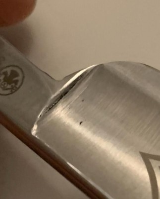 Отклеил этикетку на клинке. Увидел 2 темные точки. Плюс темные линии у самое основания клинка. Это ржавчина (что-то плохое) или след производственный?