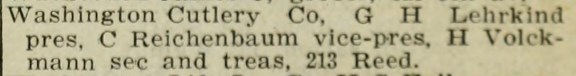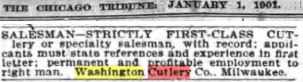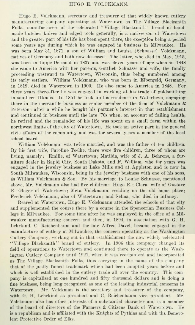 Источники: Владельцы Washington Cutlery Co Объявление о переименовании: Биография George H Lehrkind, журнал the American Cutlery, 1922 год Биография Hugo E. Volckmann, журнал The Rock River Valley : its history, traditions, legends, and charms, 1926 год