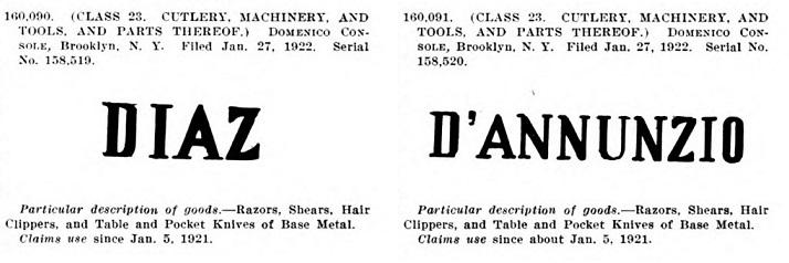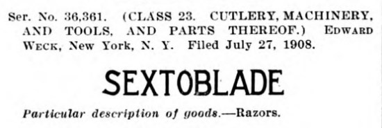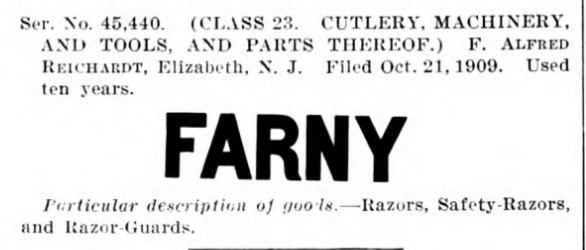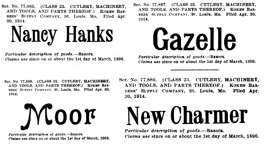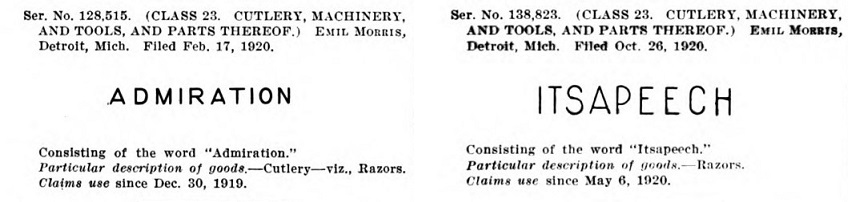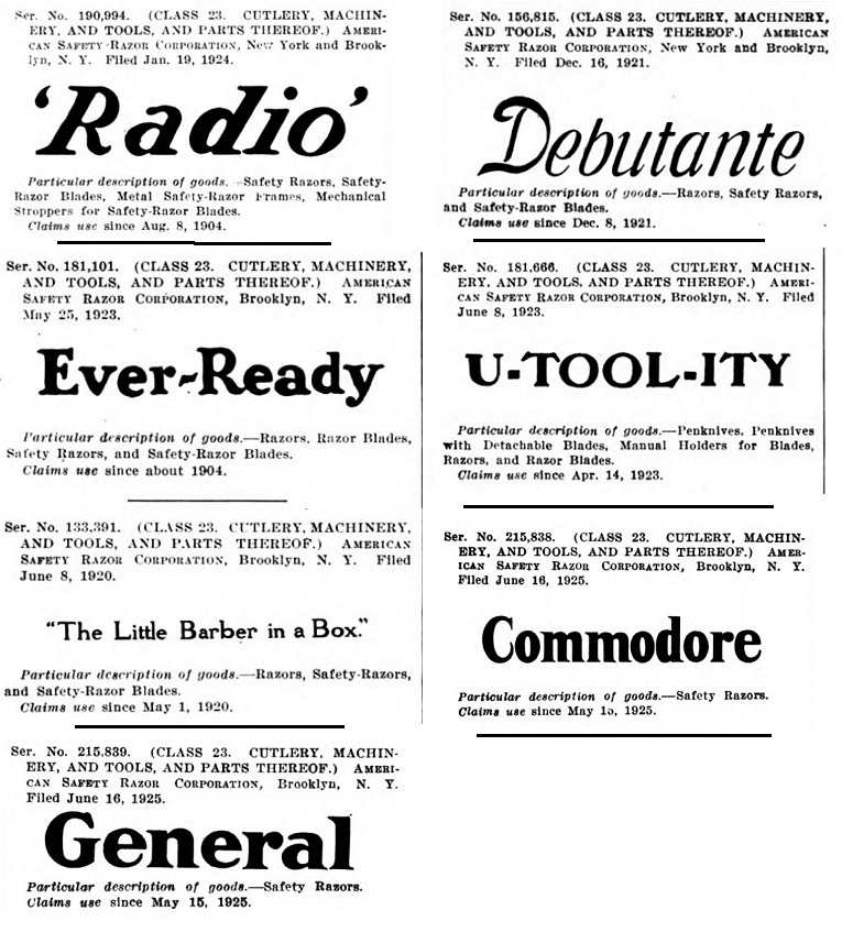 Пролистав Official gazette of the United States Patent Office, решил выписать от туда все фирмы, которые имеют отношение к бритвам (многие к безопасным бритвам) и скопировать их торговые марки.