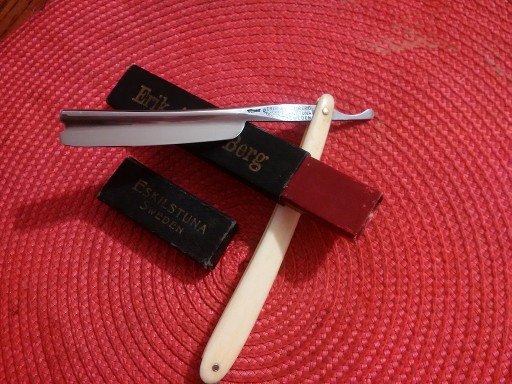 уралец: Что за производитель Erik Anton Berg? Предложили старую бритву от него,ручка ,похоже, неродная ,но само лезвие в очень хорошем состоянии, без всяких следов ржавчины, но и следов предпродажной подготовки нет, лезвие темное. На лезвии ряд (Штук восемь) золотых медалей и четкое клеймо рыбы,видимо акулы. Ширина лезвия ,скорее всего, 6(8 дюйма Может кто подсказать. что это зв бритвы, то в поиске не нашел?