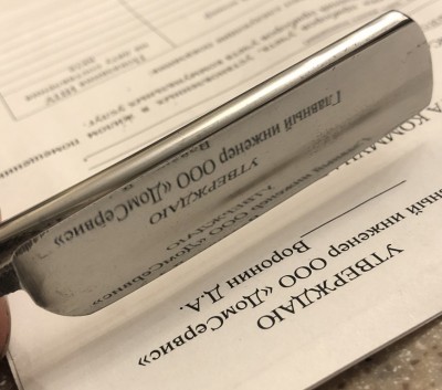 Вот ты пишешь зеленая краска. Я когда раньше видел его бритвы номерные (только на фото) всегда подспудно думал что это паста ГОИ  Ну типа полирнул, она расплавилась, затекла в насечку (а это не штамп а как положено зубильцем вырезано и потому края острые) и застыла. И как доказательство аутентичности это не вымывали...