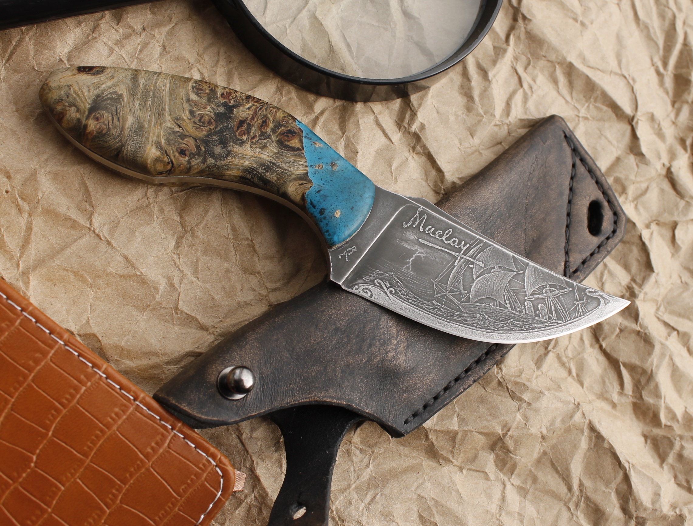 Re: Наше прочее хоббиХобби с бритвами началось год назад. А так несколько лет занимаюсь кастомизацией и изготовлением ножей. Клинки только не слесарю. Пару раз сделал и забил. А так от эскиза до ножен. Вот к примеру "Сирин" и "Родные просторы".