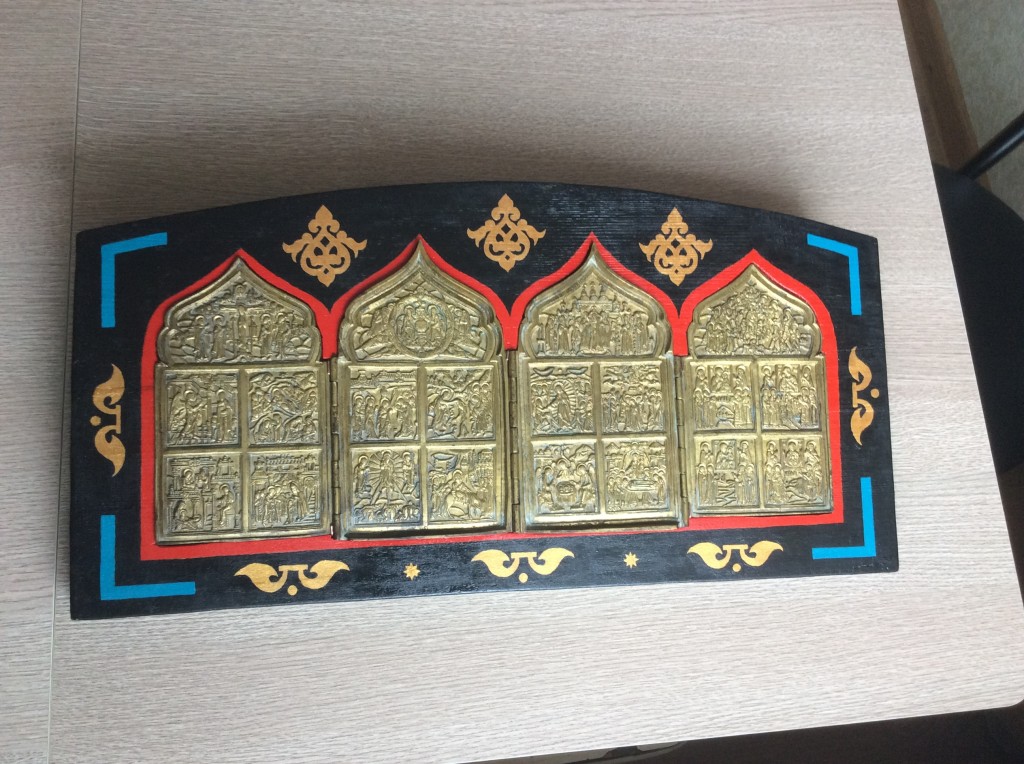 Re: Наше прочее хоббиМоё увлечение. Четырёхстворчатый складень Двунадесятые праздники, медное литьё, 19 век. Всё остальное: врезка в дерево, раскраска-моя работа.