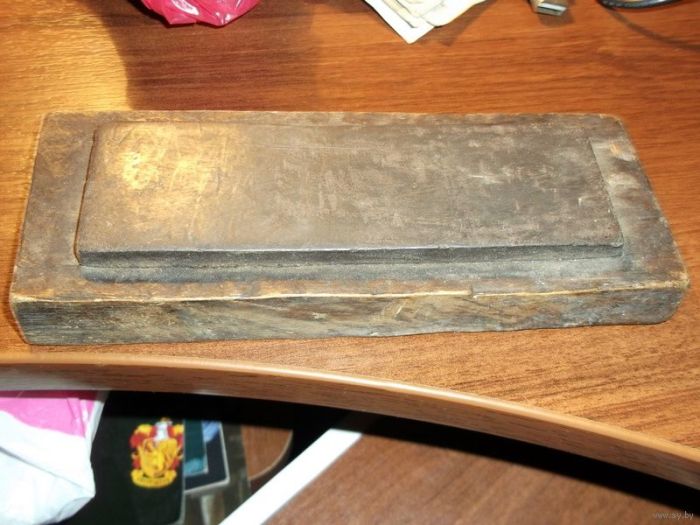 Re: Помогите определить каменьЧестно говоря я с сомнениях - с одной стороны если Софт - арканзас (для вашиты слишком мелкое зерно - даже у самой лучшей Рози - крупнее) то уж очень чистенький - при довольно старой коробке и опять таки отсутствие масла Такое впечатление что его с водой использовали - больше на мой взгляд поход на алюмоксидный синтетик на твердой связке - типа наших 24А с мелким зерном - если связка типа нашей СМ - то суспензию на стекле выделять будет а от софта или вашиты нереально получить По второму камню полностью согласен - сначала отмыть - выровнять - вытащить из коробки и сфотать торец и очищенную поверхность - ну и характеристики по выделению суспензии , работе на металле - тогда хоть что то сказать можно будет.. Re: Помогите определить каменьКамень этот деда моего товарища. А товарищу под полтинник. Вместе с камнем он хранил и бритву (золинген). Бритвой её назвать уже сложно - ещё немного сточить и будет шило. Предполагаю, что камнем не умели пользоваться - просто иногда пытались шаркать по нему насухую. По крайней мере я нанёс карандашом сетку и прошёлся с водой по матированому зеркалу - карандаш ушёл быстро и почти равномерно со всей площади. Видно, что нижняя часть (чистая) - бело-молочная.