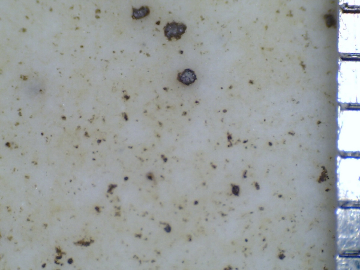Только это соверщенно не доводочный камень - для исправления геометрии и заточки ножей пойдёт отлично - а для заточки и доводки бритв - другие камни нужны Re: Помогите определить каменьКак и обещал..... вытянул из USB микроскопа, что мог. Для ориентирования в масштабе - миллиметровая сетка. Микроскоп показал, что чёрные вкрапления - всего лишь грязь в кавернах. На верхней стороне их больше, а на нижней почти нет. Может это прояснит?