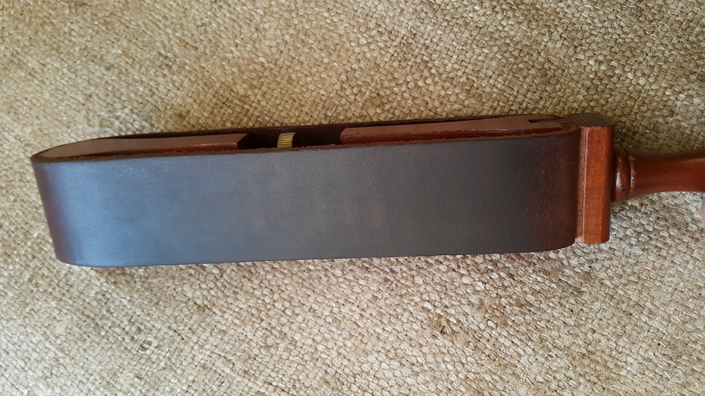 Бралась для экспериментов и доукомплектации бритвенных наборов Wilkinson Sword Толщина кожи 1 мм. Очень плотная на разрыв. Не такая мягкая как хотелось, но и не очень жесткая . Как раз в работе лежит семидневный набор. Буду посмотреть на работу кожи. Да и со своими наборами Wilkinson Sword поиграюсь
