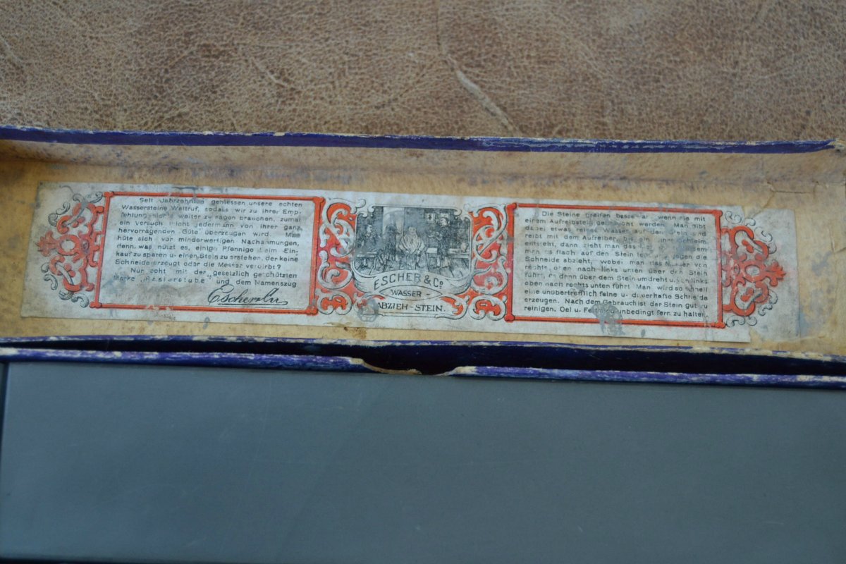Если в двух словах, то камень меня удивил и очень понравился. Хотя я и имею несколько разных атрибутированных Эшеров, но безумно хотелось попробовать продукцию Питера и проверить его на честность. Напомню, что в личной беседе и на форумах он писал, что нашёл тот самый Эшеровский карьер в Тюрингии, который был закрыт ещё в начале прошлого века по причине выработки.После этого было ещё несколько карьеров, камни из которых выходили под брендом Эшер, но именно из старой шахты выходили самые-самые качественные экземпляры. Но, кое что, видимо ещё осталось и это кое что мы сейчас имеем возможность купить за недорого, не переплачивая большие деньги за бренд.Мне до конца не верилось в то,что такое возможно, что сейчас есть люди, которым будет интересно искать старые шахты и заниматься исследованием истории давно исчезнувшей фирмы.Единственно, что успокаивало, это то, что Питер действительно увлечённый товарищ, интересный собеседник и на него можно положиться. Если бы не неправильная форма моего испытуемого камня, я бы не сомневался, что передо мной настоящий Эшер. Камень имеет примерно одинаковую твёрдость, что и остальные Эшеры. Глядя в микроскоп, я не заметил никакой разницы между камнями. Такие же трещины, характер сколов. После притирки и первой доводки на Этом камне, замечено быстрое выглаживание рабочей поверхности, что говорит, что камень действительно тонкий, финишный. Суспензия наводится быстро( как на всех Эшерах) и тактильно, при работе, также ничем не отличается от работы на Эшере. Камень быстро работает и после чистовой работы без суспензии, лезвие бритвы уверенно проходит тест на рез волоса.Бритьё получилось, как обычно, после Эшера, мягкое, комфортное и без раздражения. Для тех товарищей, кто ищет сейчас недорогой натуральный финик класса Эшера,это наиболее подходящий и уникальный в своём роде вариант. Не знаю, пилит ли сейчас ещё Питер подобные камни, но если пилит и продаёт, то рекомендовал бы не проходить мимо и попробовать купить нечто подобное. Уверен, что данные экземпляры стоят своих денег и ни коем образом не разочаруют в пользовании. Всё будет ХОРОШО...тел:+79065827134
