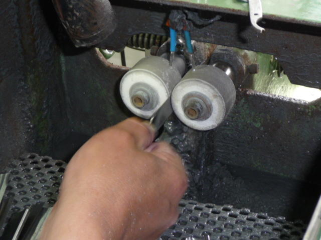 Слева на станине видны два червячных ручных вала с барашками. Очевидно ими и регулируется грубо расстояние между шпинделями. На крупном плане рабочей области видно окно, через которые шпиндели прогодят и оно достаточной ширины для установки даже 150 мм. камней. 32 года активно мусолю харю клинковой бритвой