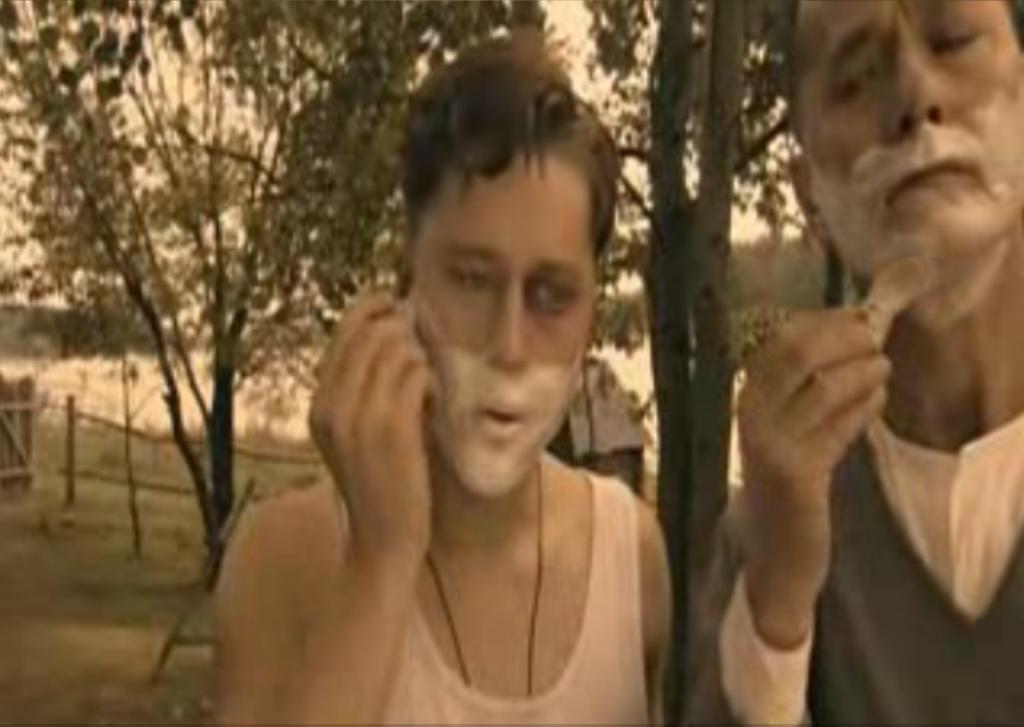 Ближе к концу негр бреет опасной бритвой в тюрьме своего белого любовника.
