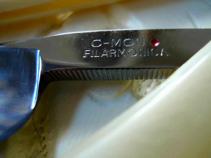 Я пока не видел Filarmonica именно с такой вставки. Если кто-то увидеть, пусть покажет фото. Обычно у Filarmonica надписи рельефные, а некоторые имеют такие металлические вставки: Но на просторах интернета попалась интересная Filarmonica, сделанная для Peter J. Michels INC из Бруклина Ню Йорк: C-mon - Filarmonica, made for Peter J. Michels INC. in Brooklyn New York: Про этого дистрибьютора инструментов для салонов красоты и парикмахерских, антон писал здесь: viewtopic.php?p=180632#p180632 С 2013 г. с кайфом бреюсь опасной бритвой пять раз в неделю, в три прохода.