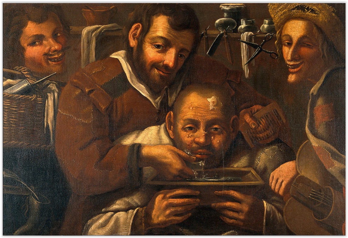„Barber-surgeon Treating Head”, „Цирюльник-хирург лечит голову” ", 1555 г.