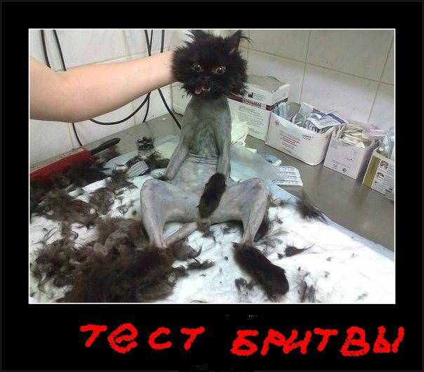 Re: Приколы и анекдоты в темуAleks Ander У него уже проблема.  Это стандартная процедура при обширном заражении кожными паразитами. Теперь его будут мазать и держать в специальном комбинезоне недели три. Потом обрастет нормально. В течение моей жизни я своих котов раза три возил на такие процедуры. Главное чтобы клиника была хорошая, а то в плохой их держат в одном помещении от чего у них сильно падает самооценка Ede, bibe, lude, rade