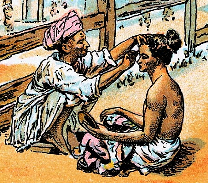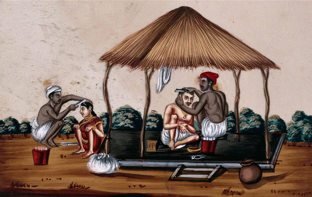 Опасная бритва в искусстве (картины, рисунки, фото, тату)Иллюстрация из рукописи под названием „Семьдесят два образца каст в Индии”, 1837 г. (Seventy-two Specimens of Castes in India). Альбом был составлен индийским мастером письма в английской школе, основанной американскими миссионерами в Мадуре, и передан преподобному Уильяму Твайнингу (William Twining).