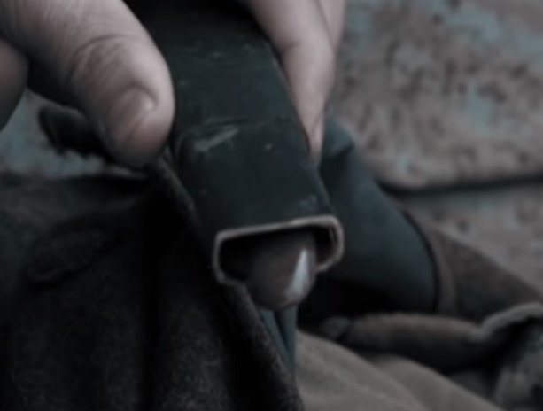 По опасной бритве спецгруппа вычисляет в покойнике диверсанта, одетого в форму бойца РККА. Старший группы с сомнением говорит "рожа смотри как выбрита гладко, до синевы"; затем, обыскав труп и идентифицировав бритву: -Так я и думал - Золинген! 1-ая серия, примерно на 29:09.