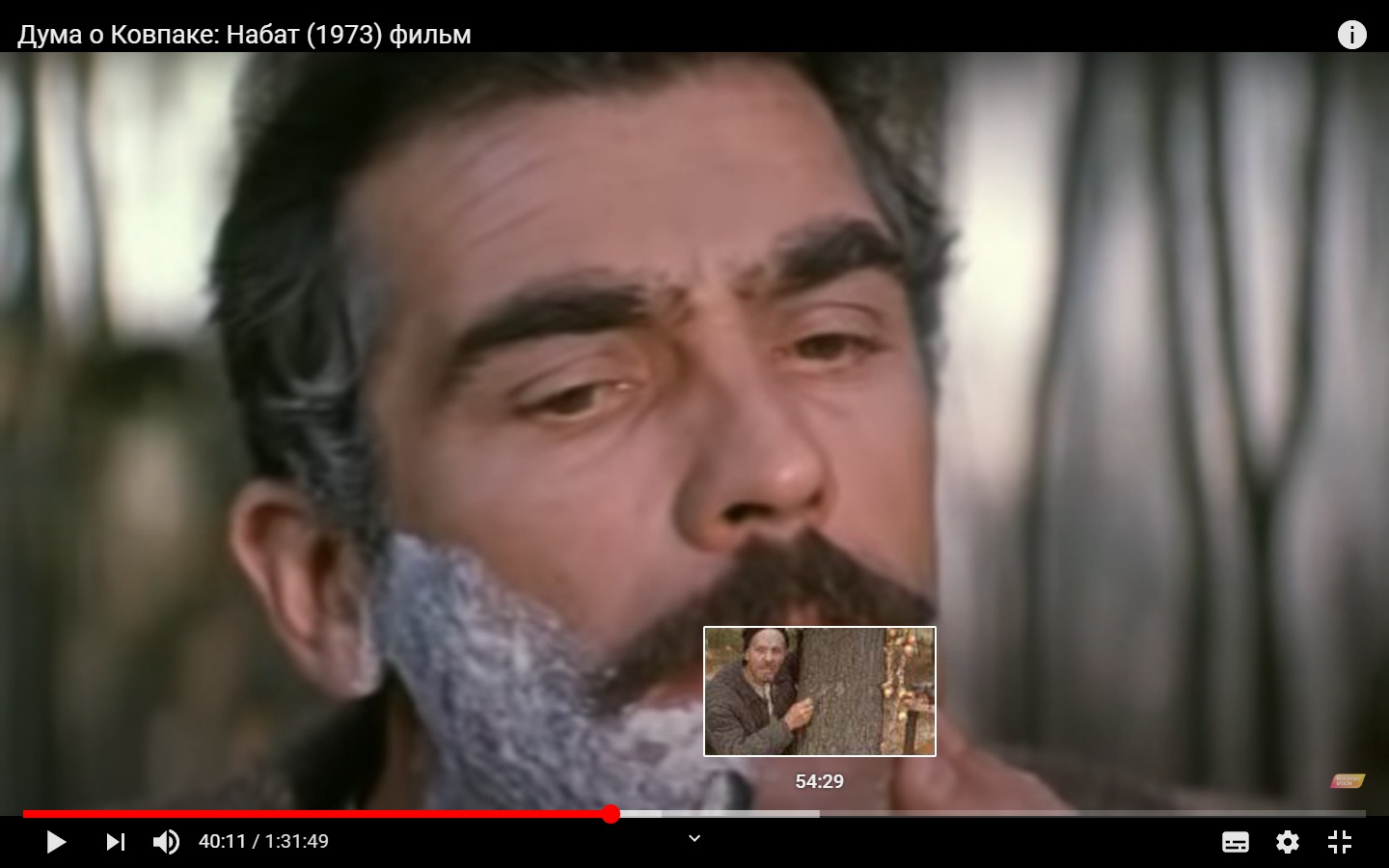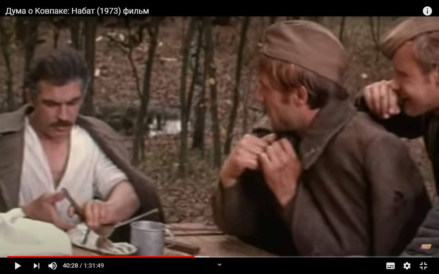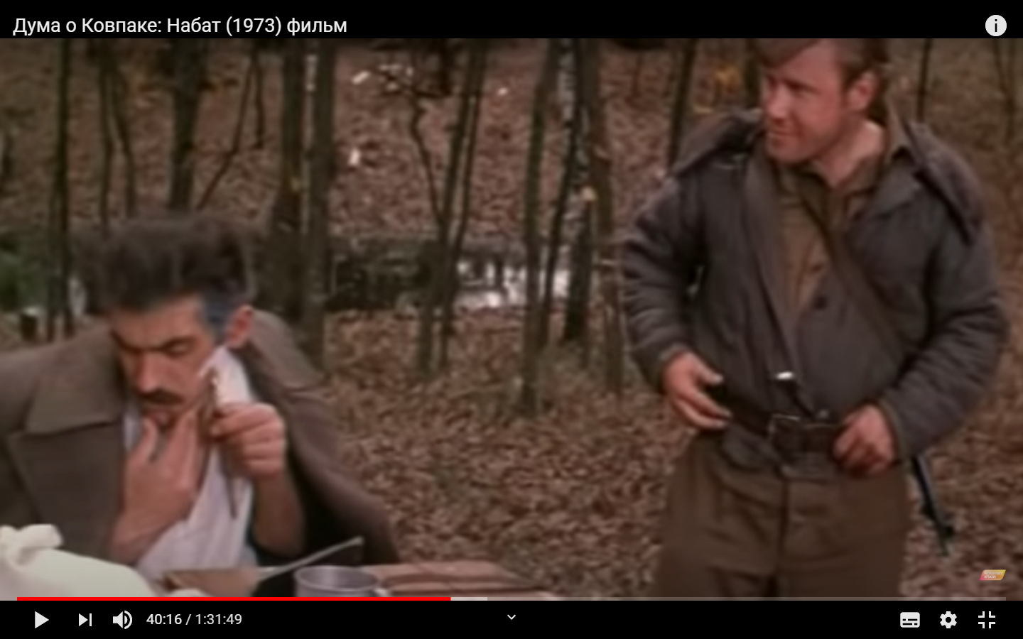 "Дума о Ковпаке. Набат" (1973) Бритвенной теме посвящен короткий, но интересный эпизод. Сцена начинается бритьем Семена Руднева (актер бреется профессионально, на мой взгляд), к которому подходят бойцы, диалог начинается словами: - Скребет? - Ничего. Скребет! Во время общения поднимается вопрос обустройства партизанской парикмахерской. Один из присутствующих демонстрирует несколько трофейных бритв, которые он "одолжил" в легковушке, возившей немецкого офицера. Даю ссылку с привязкой по времени, если не сработает или видео удалят - смотреть примерно с 40:07. https://youtu.be/sk2SZy4O3-4?t=2408