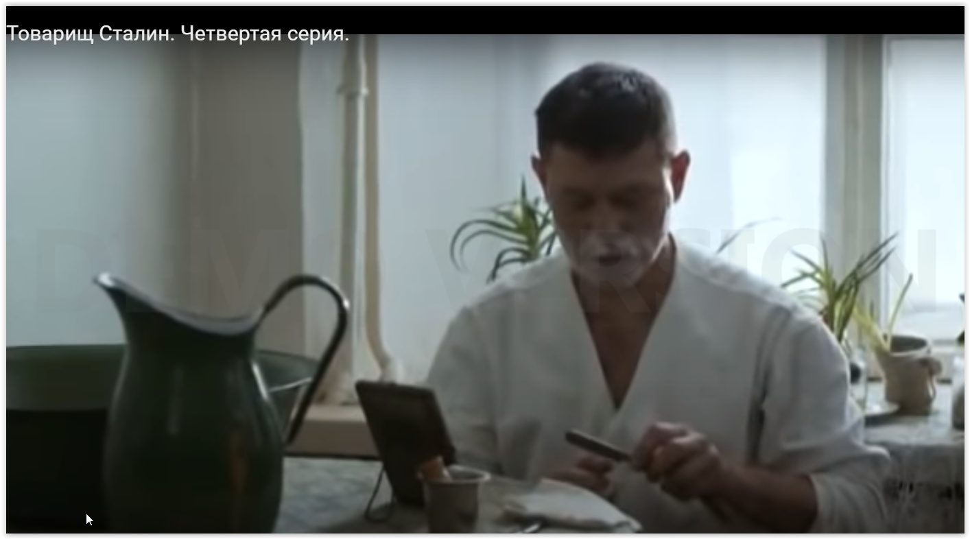2011 Россия режиссёр Ирина Гедрович Надо отдать должное уважаемому MG42, который показал сцену с бритвы во второй серии фильма „Товарищ Сталин” в теме „Чем и как бреются в Кремле?”: viewtopic.php?f=6&t=354&p=223764&hilit= ... %D0%B5#top А я покажу сцену из того же фильма, но из 4-ой серии, вот ссылка с привязой ко времени: https://youtu.be/CU9abuXD_fc?t=1250 Если случайно не сработает, смотрет с 20.50 м. Лена дарит главному герою Козлову бритву со словами: „У меня подарочек тебе есть, „Яхта”! Мужчины у нас очень хвалять за сталь. Попробуй-ка, попробуй, хорошо? … У нас, у нашего главного, Пал Петровича, день рождения же был. Мужики сразу сказали, что нужно: Коньяк и „Яхту”! …” Козлов пробует бритву на ноготь большого пальца, бреется и шею порезал.