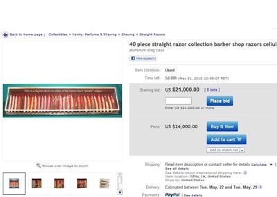 40 бритв по 600$ за штуку. Экземпляры хорошие, возможно даже уникальные, но не дороговато ли? Re: Аукционы: плагиат, развод и "великолепные" описанияА можно ссылку?