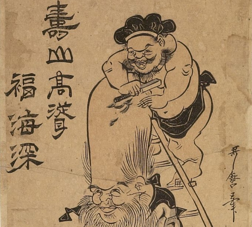 „Shaving Fukurokuju from a ladder” „Сбривание Фукурокудзю с лестницы” Собака контузила мужчину Взглянем поближе: И еще ближе: С 2013 г. с кайфом бреюсь опасной бритвой пять раз в неделю, в три прохода.