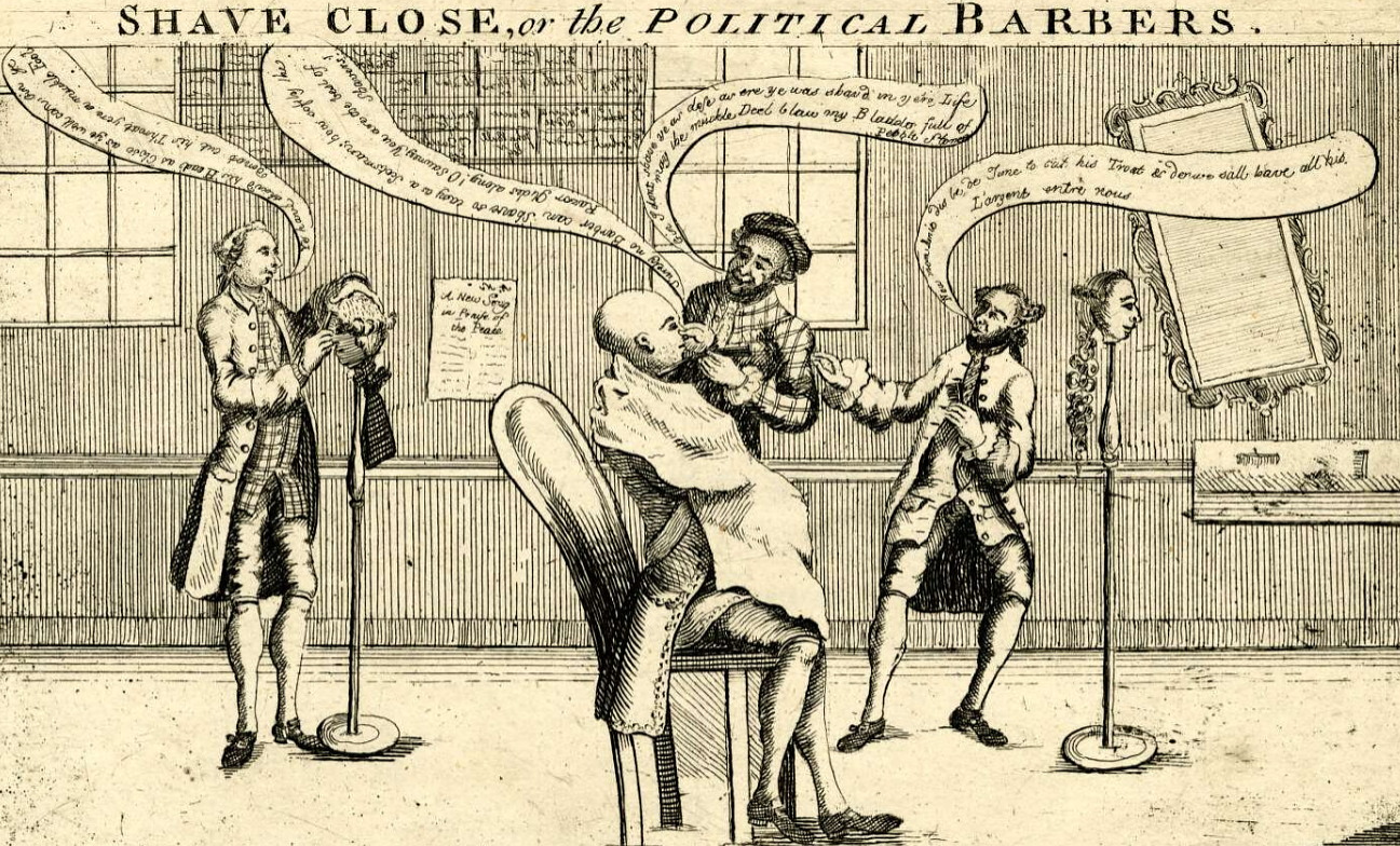 „Shave Close or the Political Barbers” „Гладкое бритье или политические цирюльники” Сатира по поводу Парижского мирного договора 1763 г. Взглянем поближе: С 2013 г. с кайфом бреюсь опасной бритвой пять раз в неделю, в три прохода.