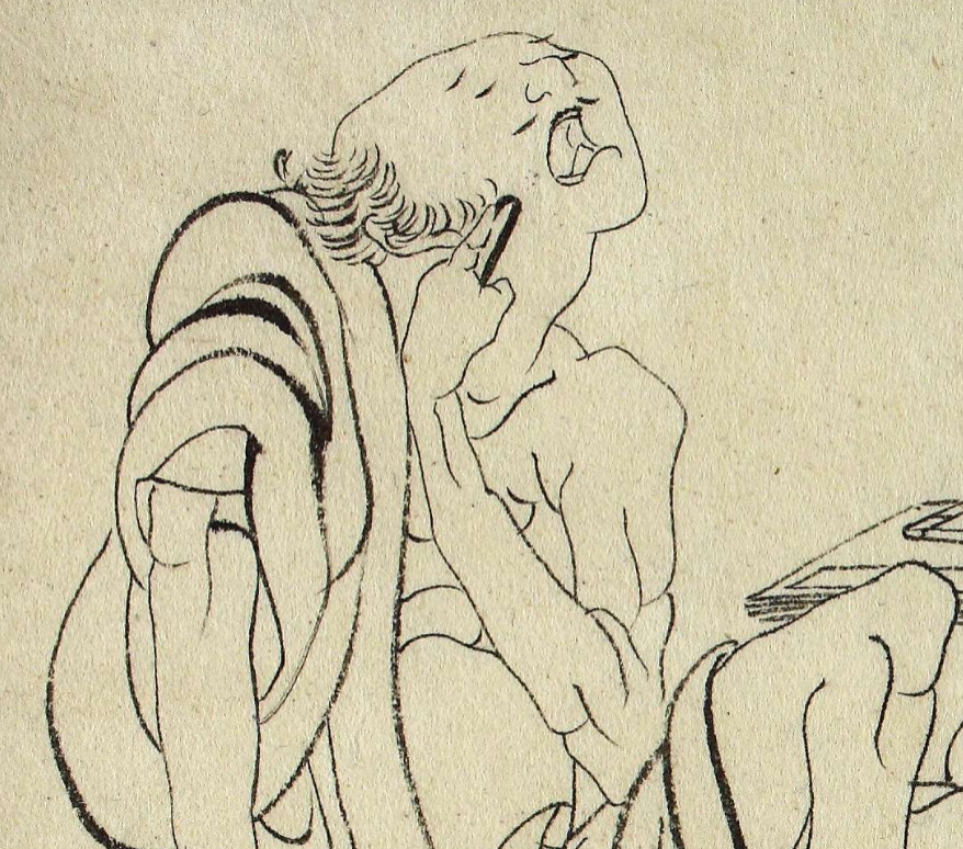 „Shaving the Head of Fukurokuju” „Бритье головы Фукурокудзю” Взглянем поближе: С 2013 г. с кайфом бреюсь опасной бритвой пять раз в неделю, в три прохода.