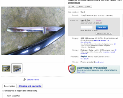 Описание вообще чудесное "VERY GOOD CONDITION, BOTH BLADE AND HANDLE - MOST UNUSUAL SHAPED BLADE" И что самое страшное - народ за нее бъется
