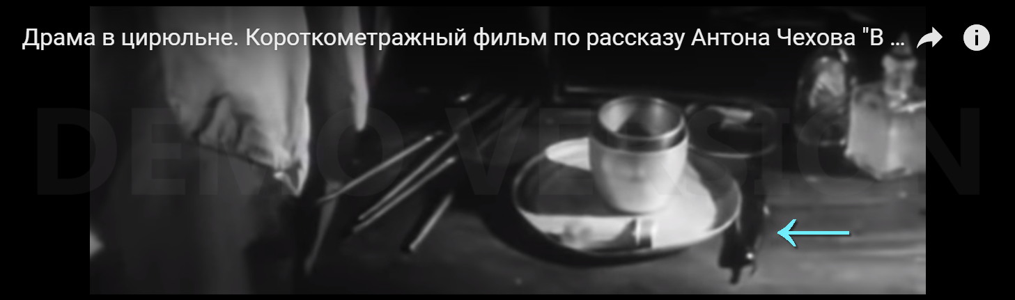 СССР 1970 г. Короткометражный фильм по рассказу Антона Чехова "В цирюльне" Режиссер: Михаил Шаров В главных ролях: Игорь Пушкарёв, Игорь Белозеров, Галина Федотова, О сцене: В начале фильма опасная бритва просто лежит на столе. Ссылка с привязкой ко времени: С 2013 г. с кайфом бреюсь опасной бритвой пять раз в неделю, в три прохода.