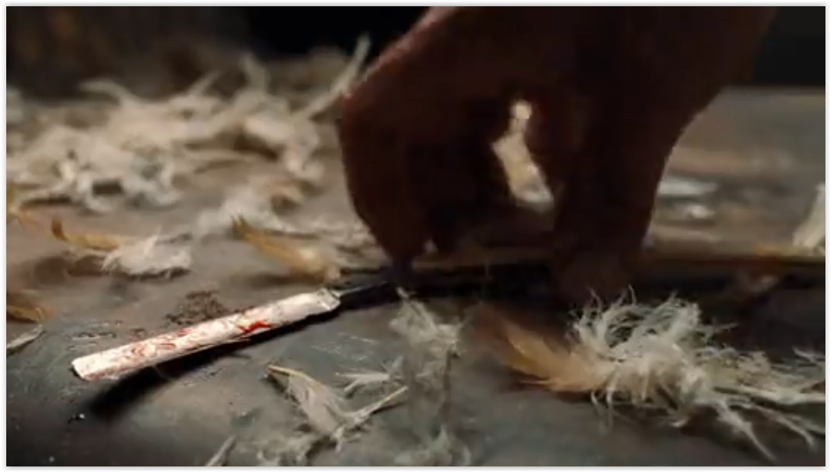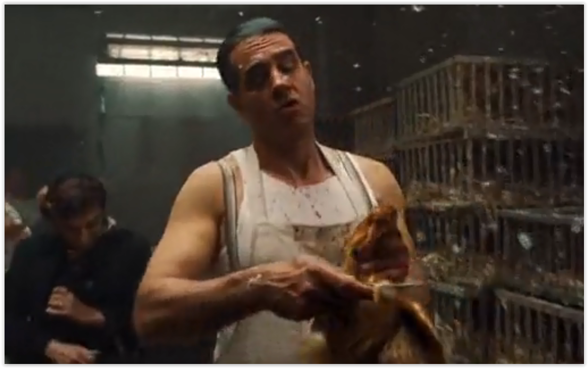 (в титрах отмечен как „Я слышал, ты красишь дома” - „I Heard You Paint Houses”) США 2019 г. Режиссёр: Мартин Скорсезе В главных ролях: Роберт Де Ниро, Аль Пачино, Джо Пеши и др. Фильм стоящий, рекомендую! О сцене: Мясник взял опасную бритву со стола и зарезал курицу. Ссылка без привязкой ко времени, смотреть с 9м.05с.: https://kinokrad.co/338615-irlandec.html С 2013 г. с кайфом бреюсь опасной бритвой пять раз в неделю, в три прохода.