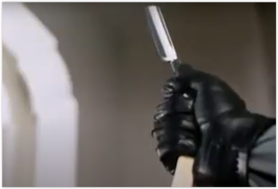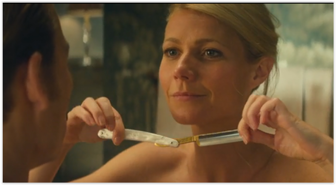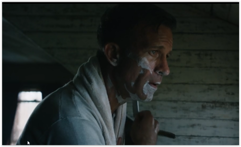 „Тебя никогда здесь не было”, Великобритания, США, Франция 2017 г. Режиссёр: Линн Рэмси В главных ролях: Хоакин Феникс, Екатерина Самсонов и др. О сцене: После того, как зарезала своего похитителя, красивая девушка ужинает, а рядом лежит окровавленная бритва. Ссылка с привязкой ко времени: С 2013 г. с кайфом бреюсь опасной бритвой пять раз в неделю, в три прохода.