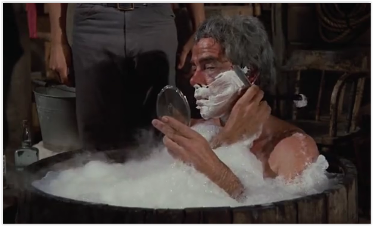 „Cat Ballou” „Кэт Баллу” США 1965 Режиссёр: Эллиот Силверштейн В главных ролях: Джейн Фонда, Ли Марвин и др. О сцене: Человек бреется опасной бритвой. Ссылка с привязкой ко времени: https://youtu.be/et1mQSQhpok?t=128 С 2013 г. с кайфом бреюсь опасной бритвой пять раз в неделю, в три прохода.