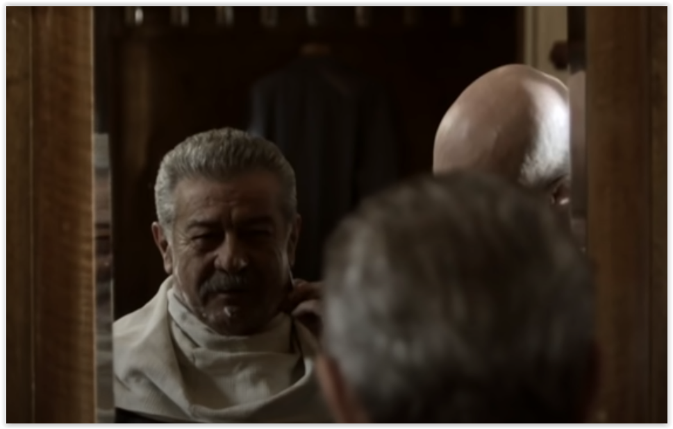 Россия, 2011 г. Режиссёр: Алексей Мурадов В главных ролях: Александр Балуев, Елена Яковлева, Ирина Розанова и др. Серия 2. Цирюльник бреет Сталина. Ссылка с привязкой ко времени: Смотреть с 6 м. 21 с. Серия 3 Бритвы режут полотенце для перевязок. Ссылка с привязкой ко времени: Смотреть с 42 м. 05 с.