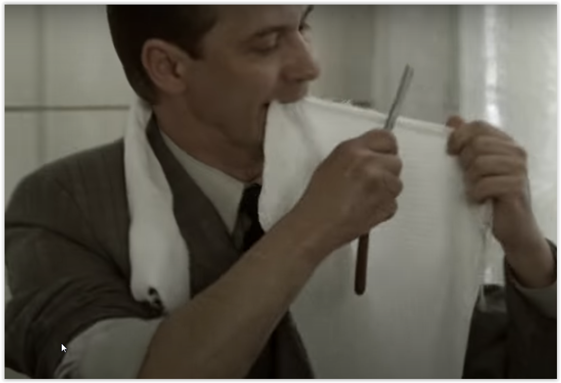 Италия, Германия, Швеция, 1998 г. Режиссёр: Джакомо Баттиато В главных ролях: Рауль Бова, Аня Клинг и др. Ссылка без привязкой ко времени: https://rezka.ag/series/drama/33606-sprut-9-1998.html Смотреть с 03 м. 36 с. О сцене: Преступник, бреется опасной бритвой преступно - поперек. С 2013 г. с кайфом бреюсь опасной бритвой пять раз в неделю, в три прохода.