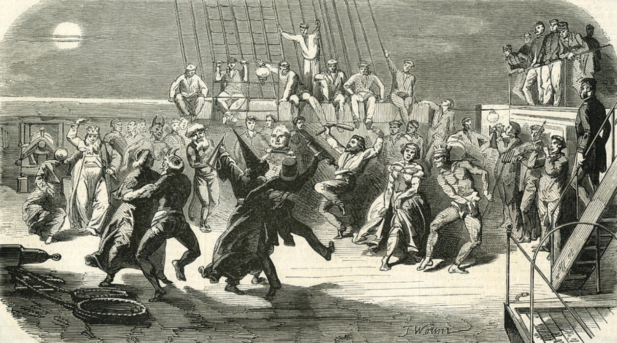 „French sailors celebrate the crossing of the Equator” „Французские моряки празднуют переход экватора”, 1899 г. Взглянем поближе: С 2013 г. с кайфом бреюсь опасной бритвой пять раз в неделю, в три прохода.