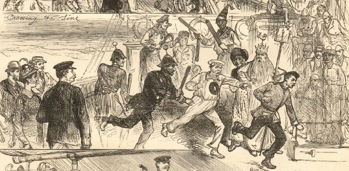 „Crossing The Line” „Пересечение экватора”, 1891 г. Взглянем поближе: С 2013 г. с кайфом бреюсь опасной бритвой пять раз в неделю, в три прохода.