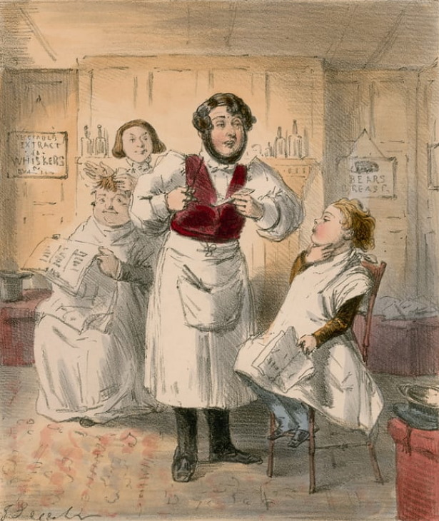 Опасная бритва в искусстве (картины, рисунки, фото, тату)John Leech (1817-1864). Джон Лич - британский художник-карикатурист, гравёр по дереву, книжный иллюстратор. Был создателем рисунков и карикатур из жизни лондонцев на темы морали и политики, иллюстрировал произведения многих классиков английской литературы первой половины XIX века.