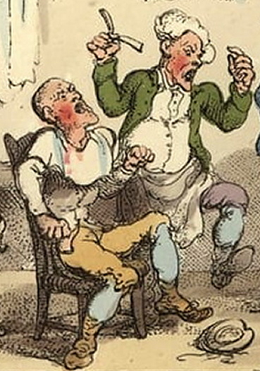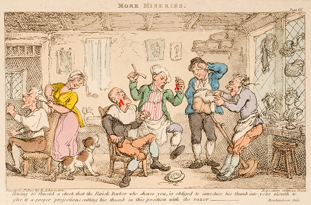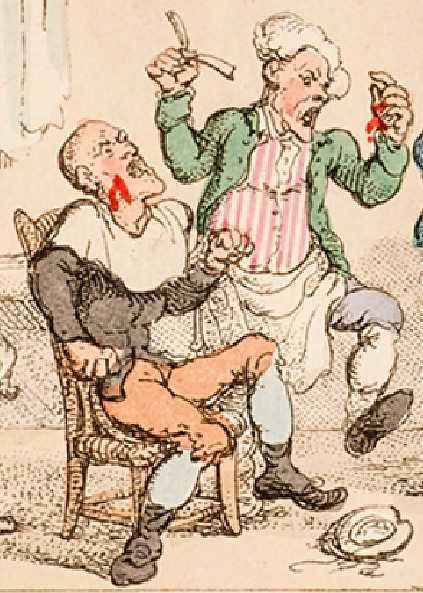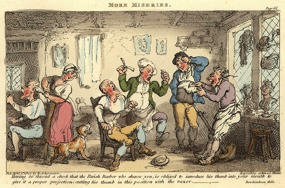 Опасная бритва в искусстве (картины, рисунки, фото, тату)Thomas Rowlandson (1757–1827) - английский художник, карикатурист и книжный иллюстратор. Вот, его иллюстрация из книги преподобного Джеймса Бересфорда „Бездны человеческой жизни”, 1808 год