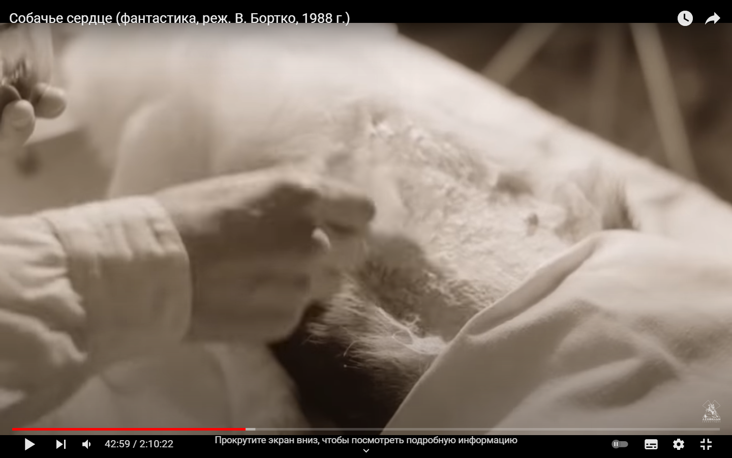 Доктор Борменталь проводит обработку операционного поля Шарику, перед пересадкой ему гипофиза и семенных желез Клима Чугункина - намыливает помазком, затем опасной бритвой сбривает шерсть.