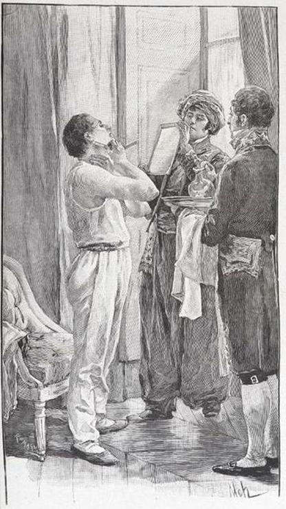 Иллюстрация из газеты „Mon Journal” от 29 мая 1897 г. „Antoine se mit a raser le comte” „Антуан начал брить графа” Взглянем поближе: С 2013 г. с кайфом бреюсь опасной бритвой пять раз в неделю, в три прохода.
