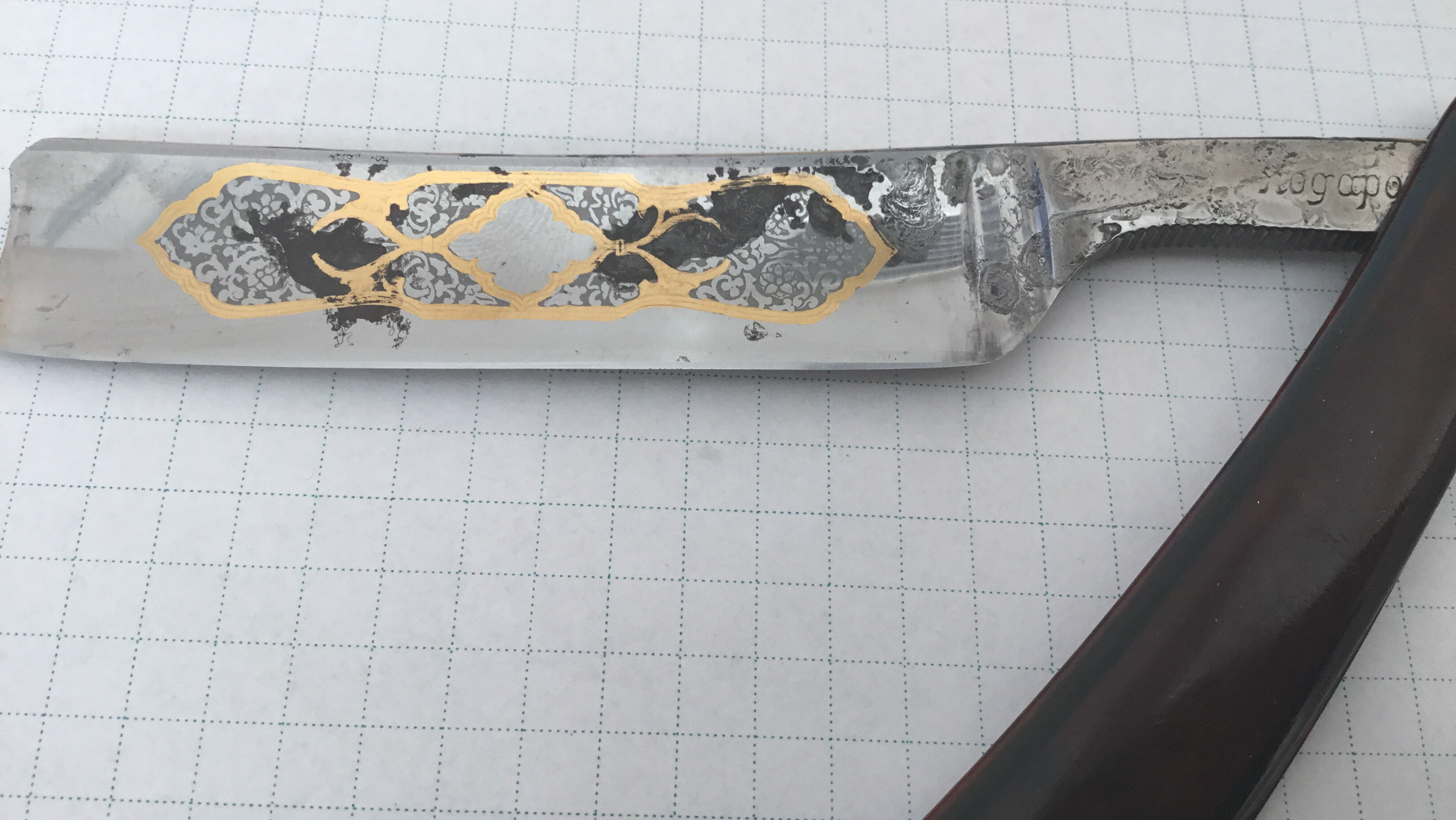 Это заводская бритва?Как то, очень давно, через мои руки прошёл Подарок с арабской вязью. Красивая! Продал. Жалею.