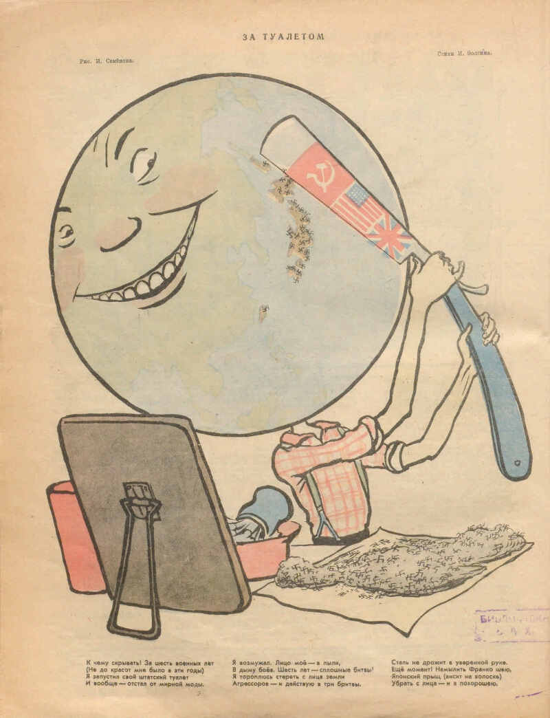 Так будем хоть при жизни разнолики! Опасная бритва в политических карикатурах и сатиреКрокодил, 1945 год