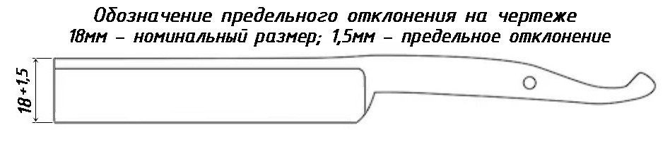 Чтобы ты легче понял этого термина, я быстренко состряпал картинку, где показал как это могло выглядеть. Предельное отклонение на чертежах обозначается в миллиметрах, более мелким шрифтом и ставится несколько выше обозначения номинального размера: