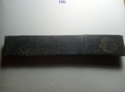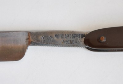 год указан, 1937. Однако различима надпись - "Метизсоюз, Артель Бритва, Москва". Я думаю, что в 37м их переподчинили к новой, москосквой, структуре - МосГорМетизСоюз, что они и поторопились отобразить в металле. Однако головная структура все быстренько исправила и производственные марки стали штамповаться с прежней аббревиатурой ВКПС (см бритву номер 8 из таблицы)