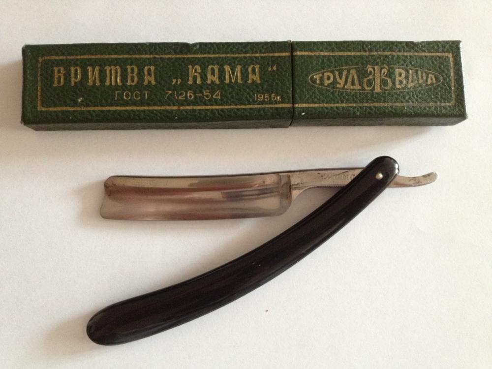 Вот такая "Кама" 56-го года выпуска. В пользовании не была, заводская заточка, геометрия в порядке, за 60 лет хранения немного пошла пятнами, родной пенал чистенький, как с завода. Теперь вопрос: разве это "Кама"? Лезвие-то от "Подарка", только без какого-либо рисунка. Напутали с клеймом или неразрисованные "Подарки" считались "Камой"?