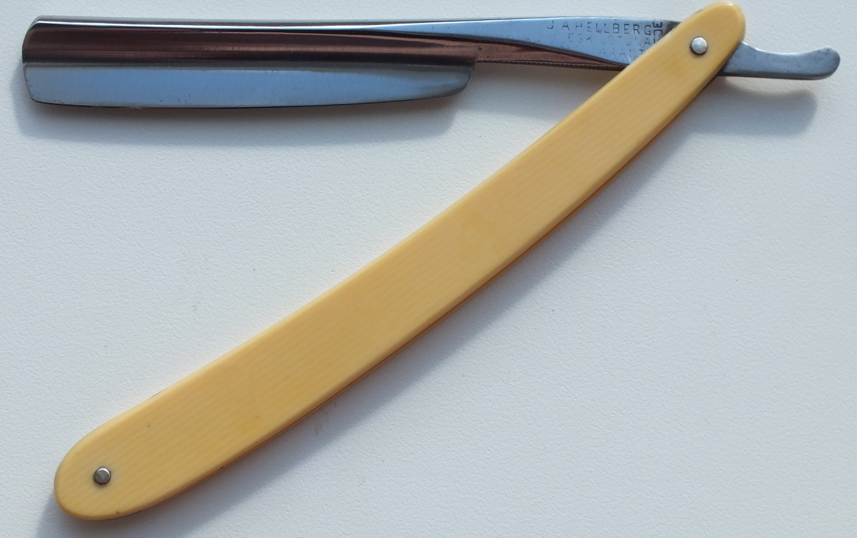 Швед J.A.Hellberg  Eskilstuna. Состояние на фото. Оправа целлюлоид.Клинок 4/8 почти клин, размеры 134х14х5 мм.