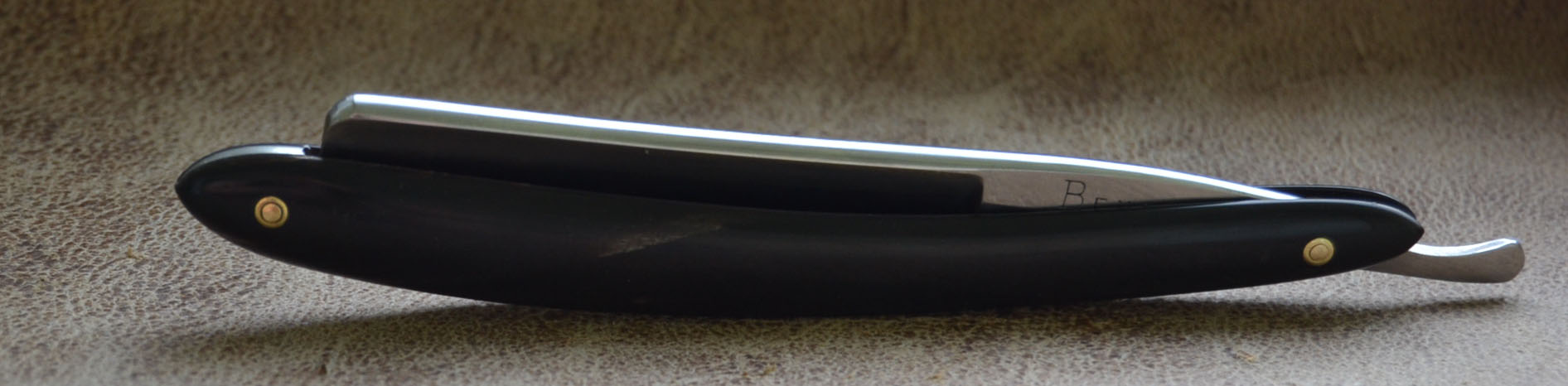 6/8 клин. Относится к раннему периоду деятельности фирмы. Очень понравилась сталь этой бритвы. Рукоять из рога. Заточена и готова к бритью. Продано Spoiler Show