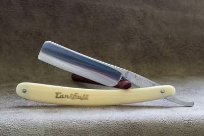 Редко встречающаяся марка бритв из Шеффилда. Ширина 6/8, вогнутость полная или правильнее сказать 3/4, хотя разница между минимальна, эластичная режущая кромка, прекрасная мягкая сталь, новая рукоять из кости верблюда. Бритва заточена и готова к бритью. Одна из немногих бритв, протестированных мной лично - дала очень приятный результат в бритье полутора недельной щетины, причем сохранила достаточную остроту и прошла после бритья тест на рез волоса, рекомендую как новичкам, так и коллекционерам. Продано. Spoiler Show