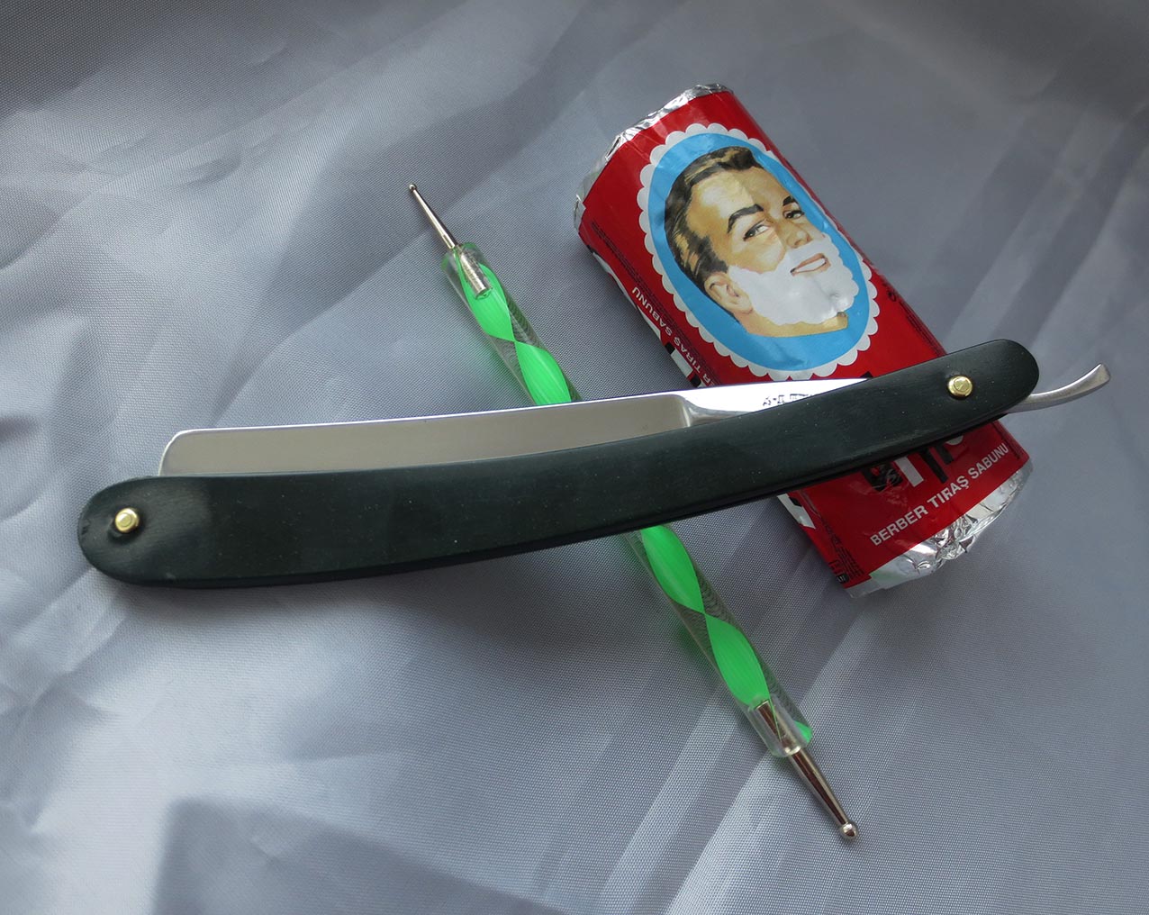 Columbia Cutlery Worcester Mass. Не новодел, ориентировочно - 50-60е года. Ширина клинка - 5/8 дюйиа, углеродка, вогнутость - 1/2, оправа - пластик, заклёпки - латунь. Бритва заточена и подготовлена к работе на японских водных камнях. По качеству стали и геометрии не уступает лучшим европейским брендам. Отличный вариант для начинающего научиться настоящему мужскому занятию. Также в наличии ремни для правки и бесплатная доставка при покупке комплекта. Цена американки - 3450 рублей. Бесит, когда приходится пользоваться бритвой моложе себя...